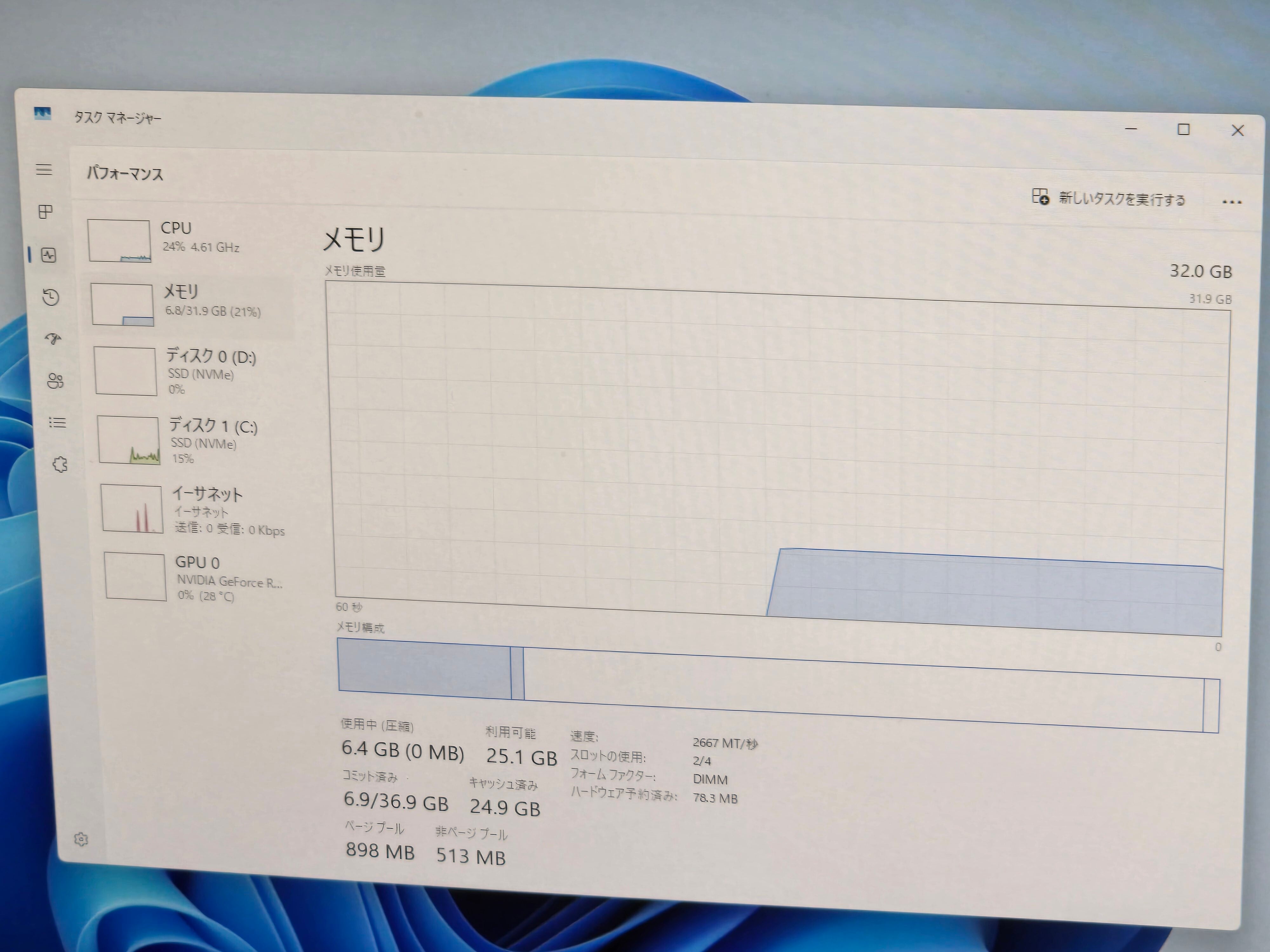 32GBメモリ&NVMe SSDデュアル構成で超快適ロード