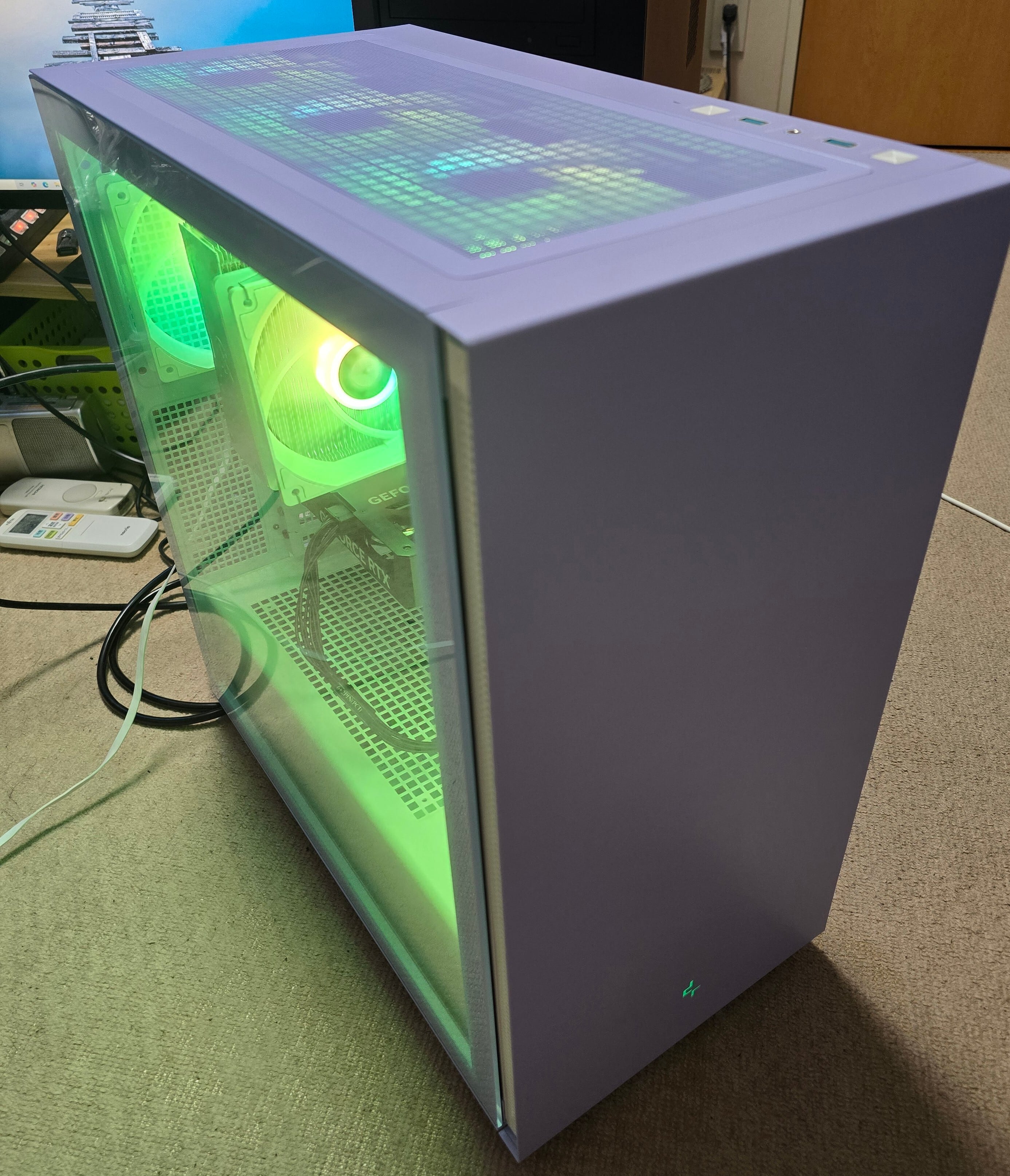 鳩猫‐紫苑(しおん) 静寂と光を纏う創造機|Core i9 × RTX4060 × 64GBメモリ搭載モデル --- コンセプト 鳩猫工房が創り出す、静と華を併せ持つ特別仕様モデル。 柔らかなライラックパープルの筐体に、ホワイトと光の調和を融合。 ハイエンドCPUと最新GPUを搭載しながら、静音・美観・性能のすべてを追求しました。