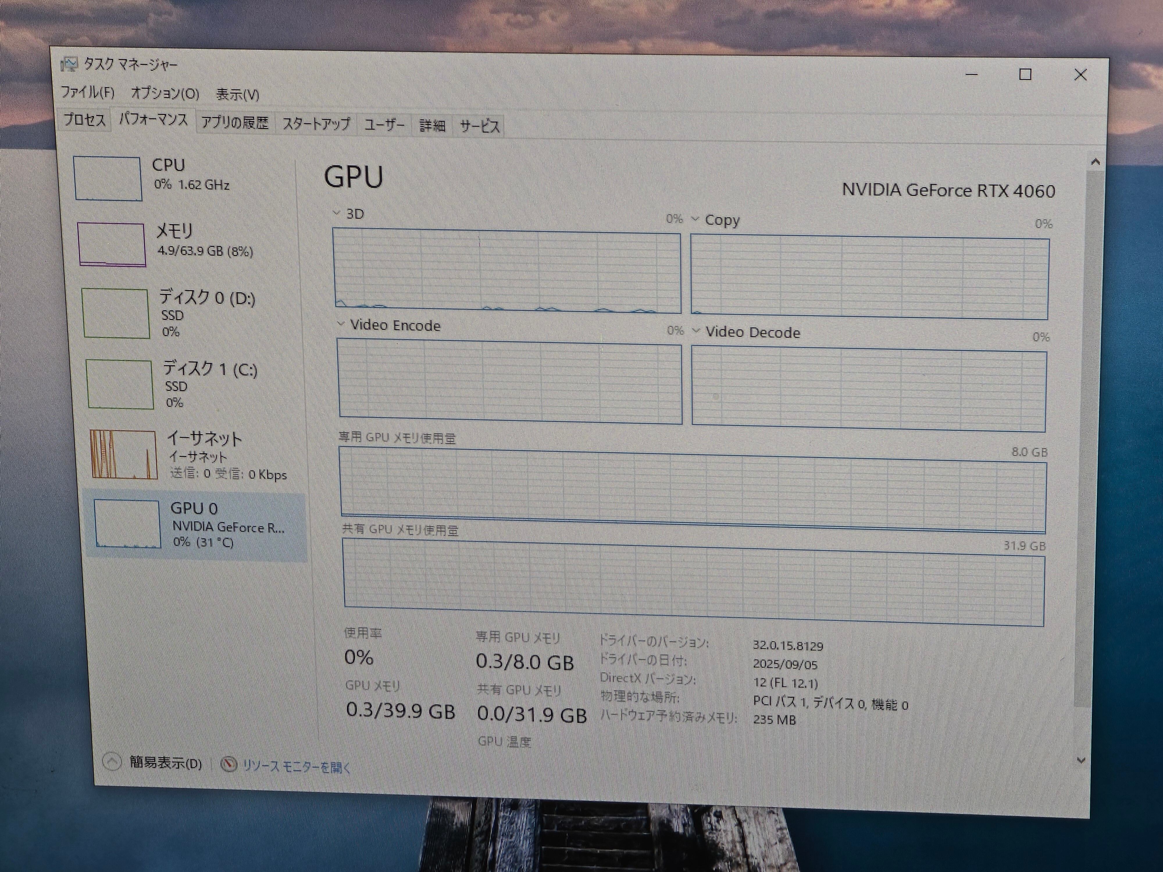 GPU:NVIDIA GeForce RTX 4060 8GB(PNY製)