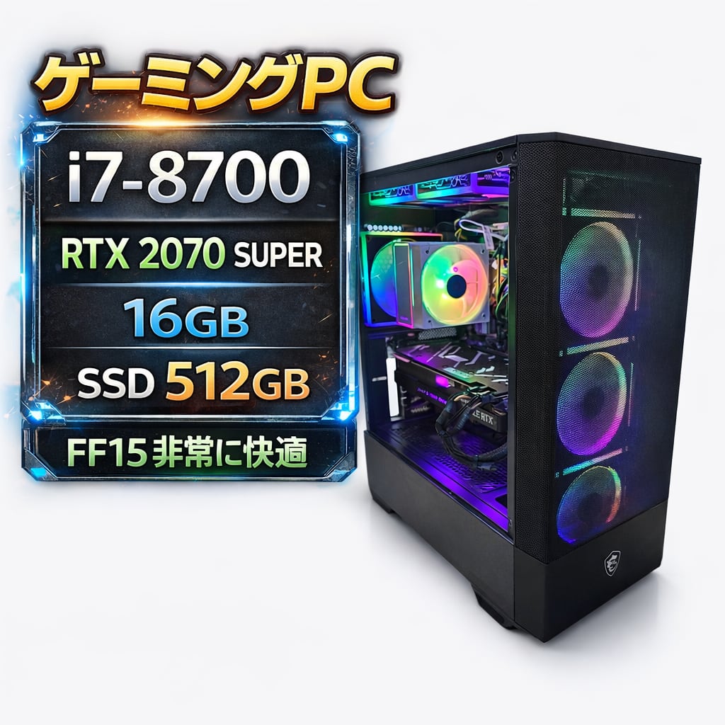 鳩猫工房 再生ゲーミングPC|Core i7-8700 × RTX2070SUPER|16GB|SSD約600GB|整備済・即使用可能モデル