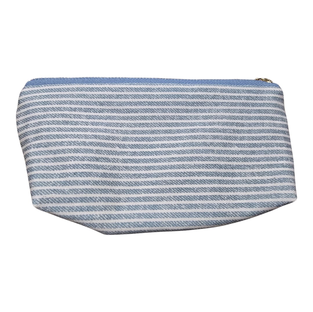 【一点物】ライトブルー ボーダーポーチ|ナチュラルデザイン|ハンドメイド