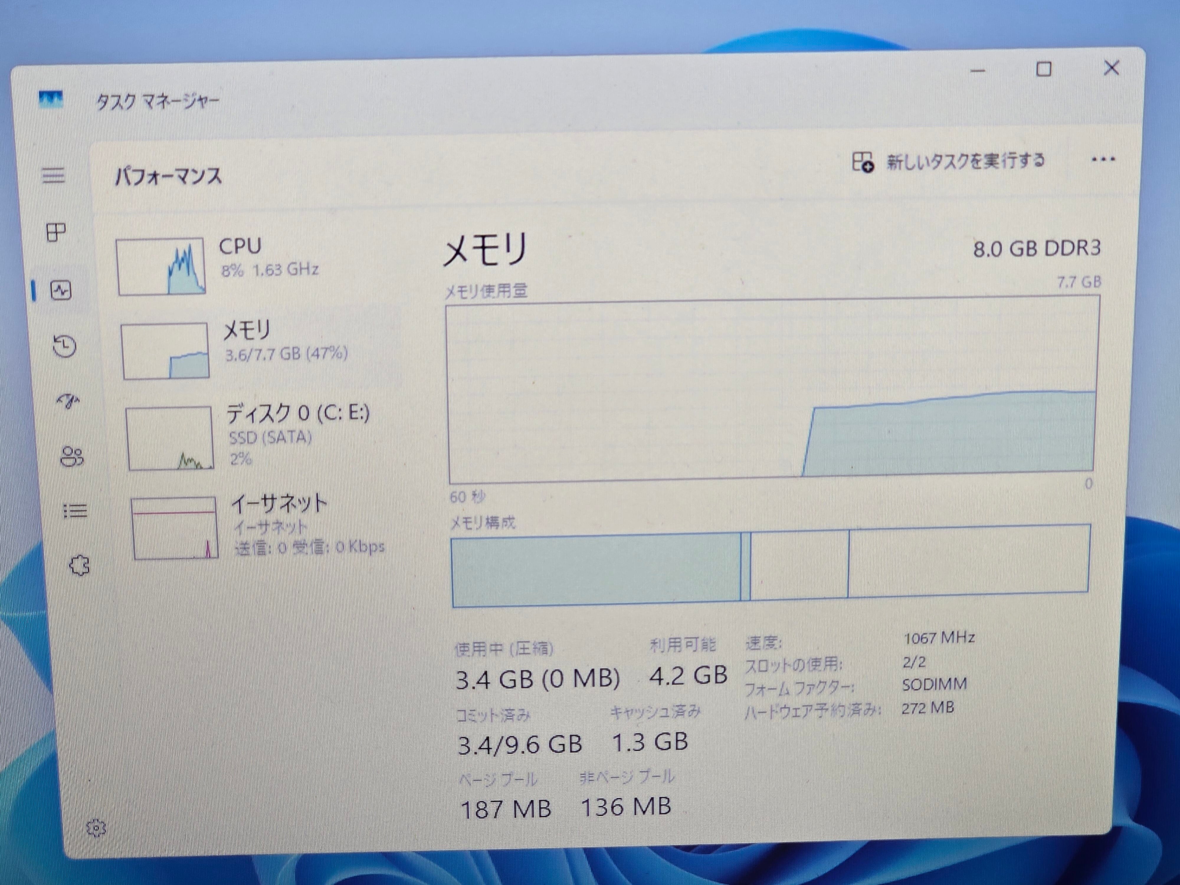 ・メモリ:8GB(DDR3)