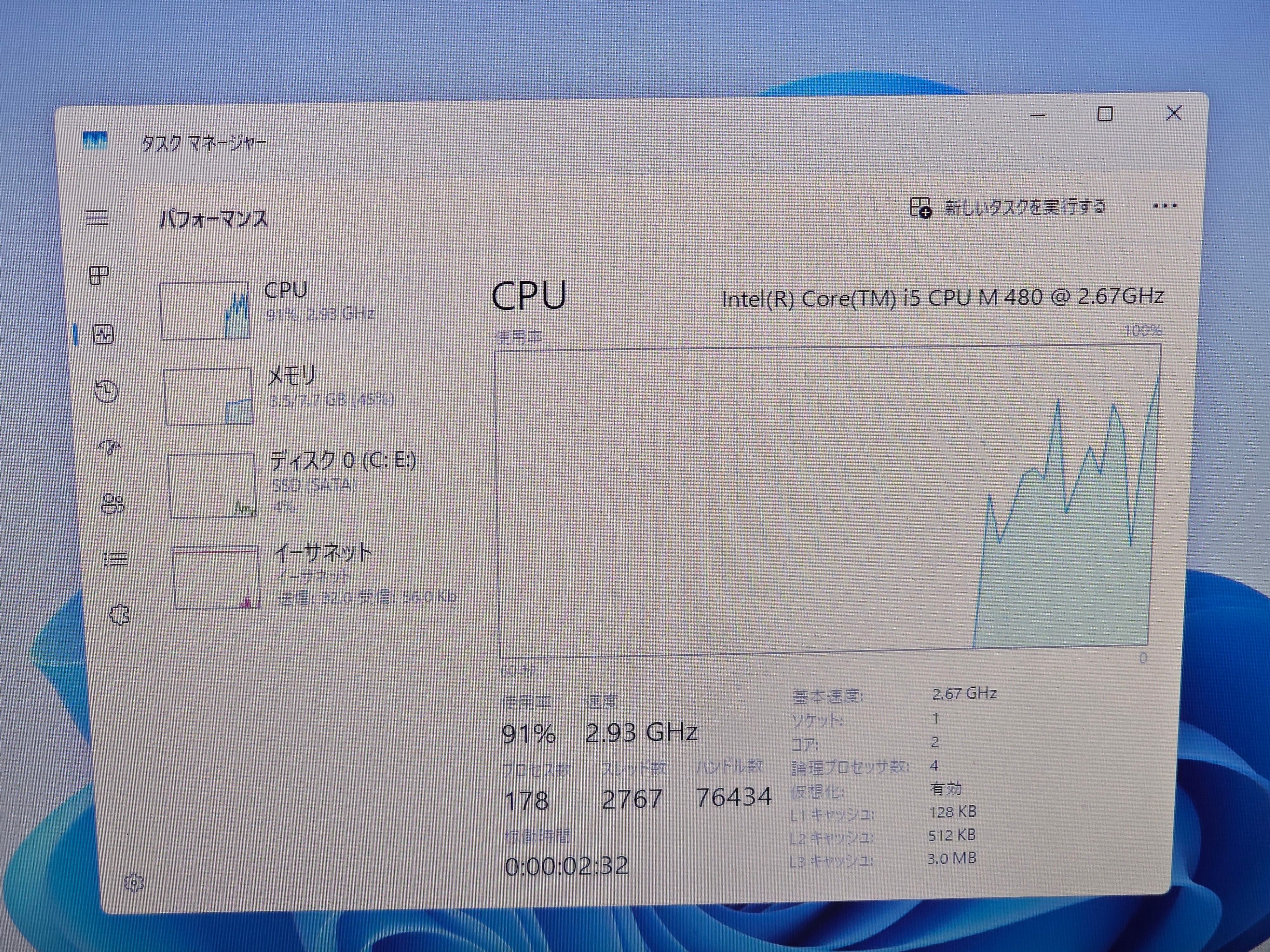 ・CPU:Intel Core i5 M480(2コア4スレッド)