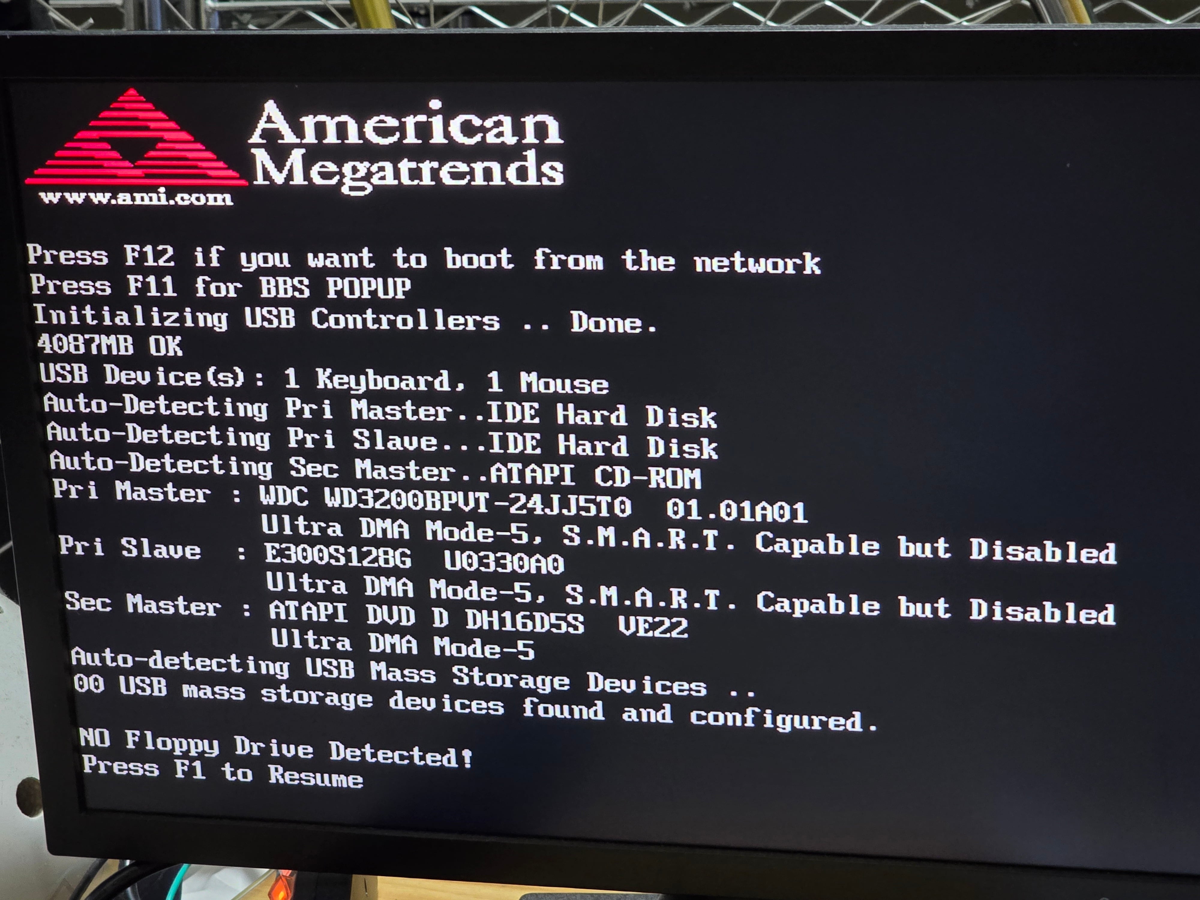 (画面表示:NO Floppy Drive Detected)