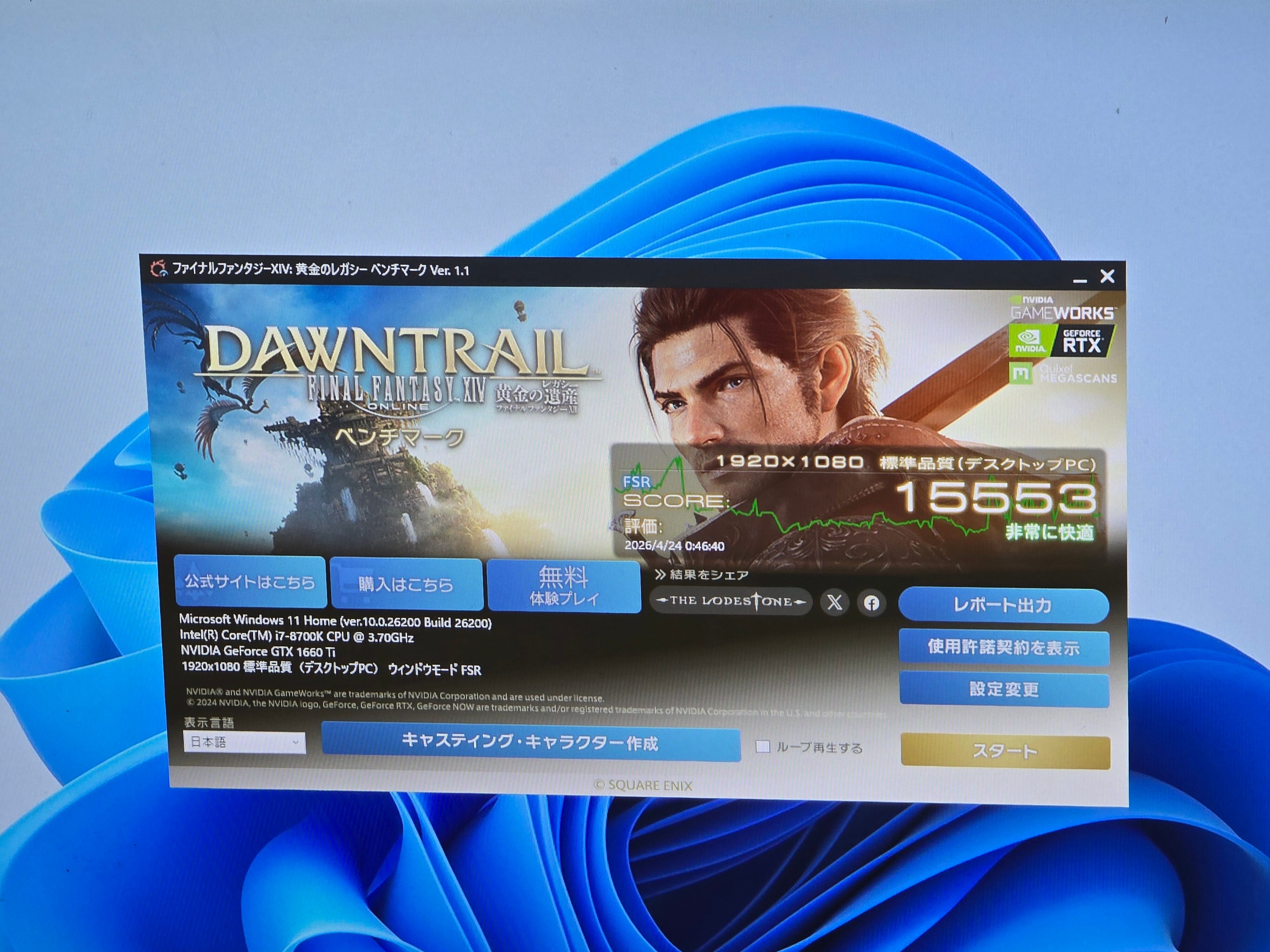 ・GPU:NVIDIA GeForce GTX 1660 Ti(6GB)