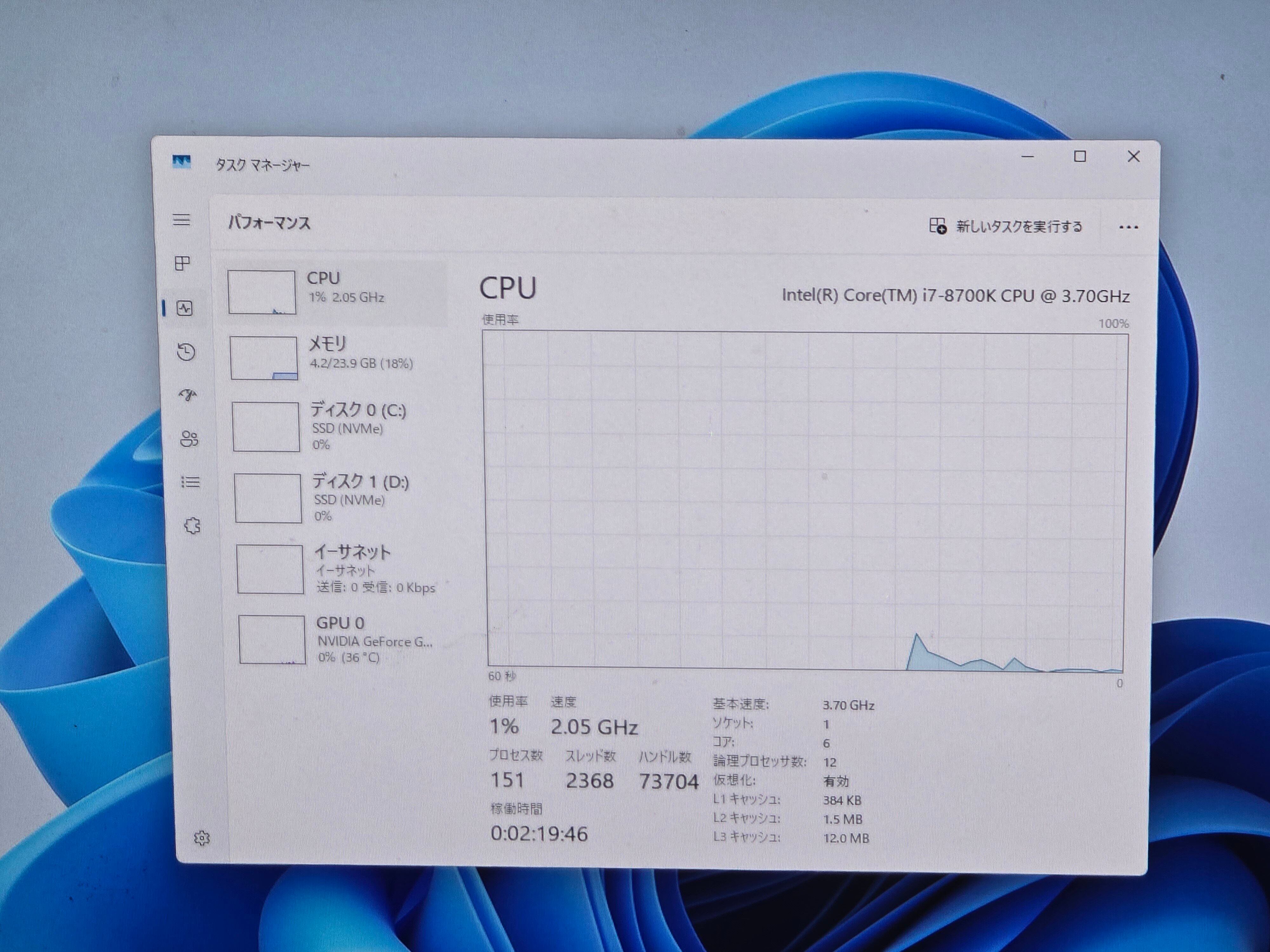 ・CPU:Intel Core i7-8700K(6コア12スレッド)